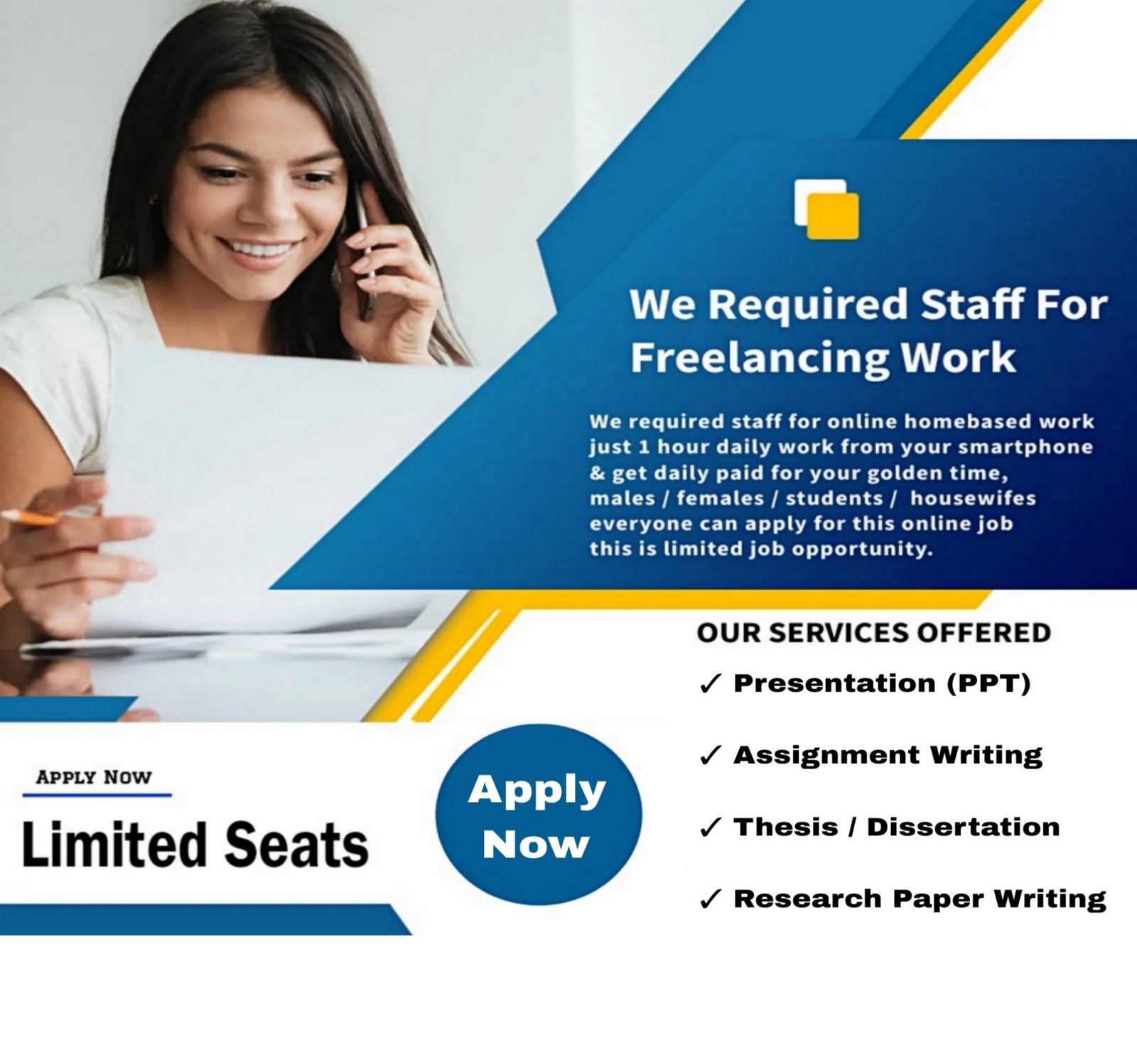 Overview This is a homebased part-time freelancing opportunity focused on writing and typing related project work. Tasks are assigned on a project basis, allowing individuals to work according to their availability. This option is suitable for students, females, and housewives who want to utilize their free time productively while working from home. The process is structured, simple to understand, and designed for beginners as well as those exploring online freelancing platforms. Earn upto 6,000 see earning plans apply directly